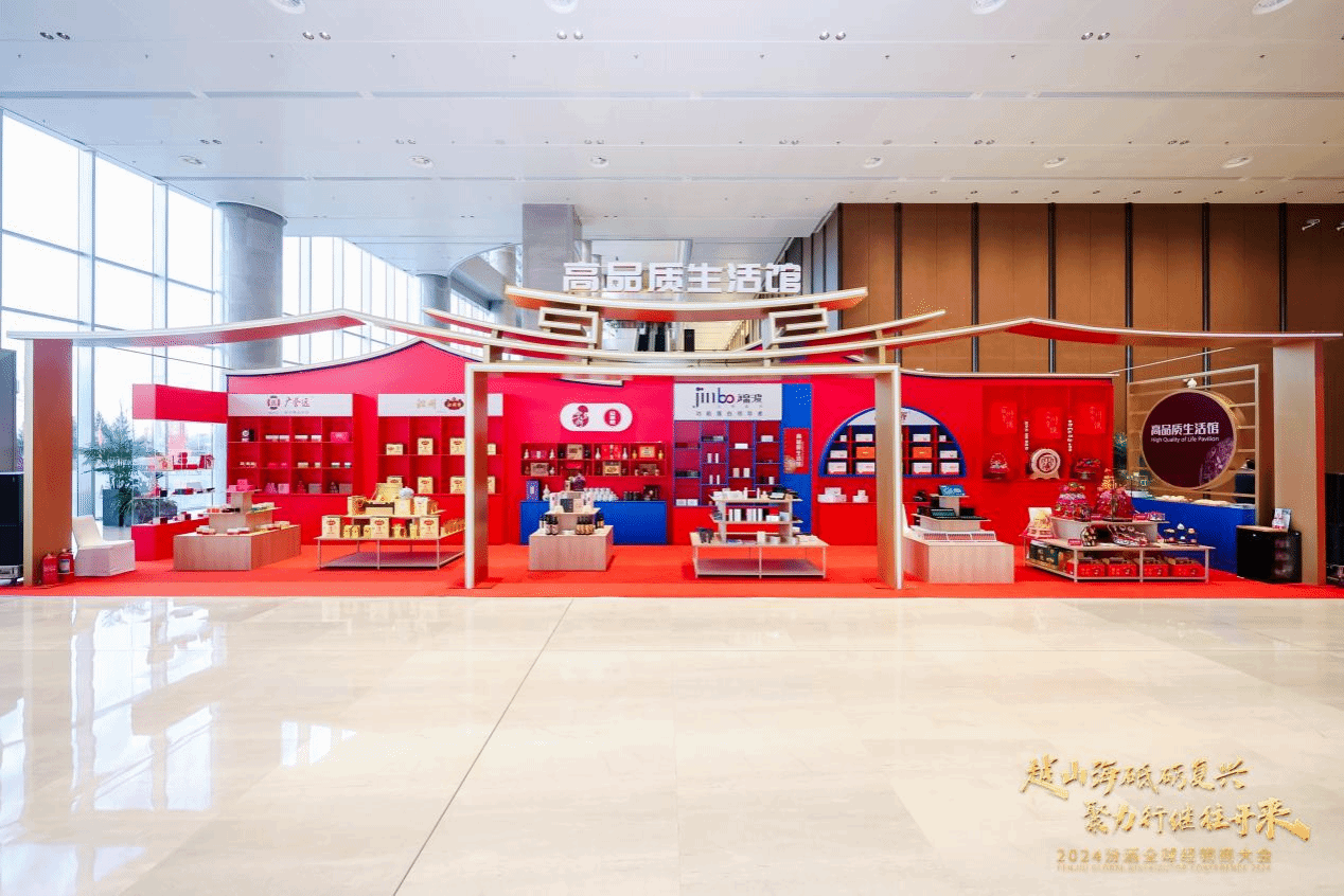 會議中心一層序廳空間設置的“山西高品質生活展館”尤爲引人注目,旨在通過一系列高端、精緻的産品展示,向全球經銷商和參觀者展現山西獨特的文化底蘊和高品質生活理念。
